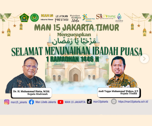 Civitas MAN 15 Jakarta Timur mengucapkan, selamat menunaikan ibadah puasa 1 Ramadhan 1446 H